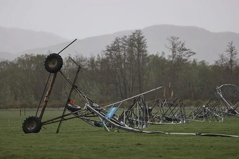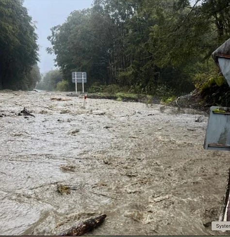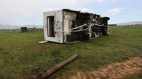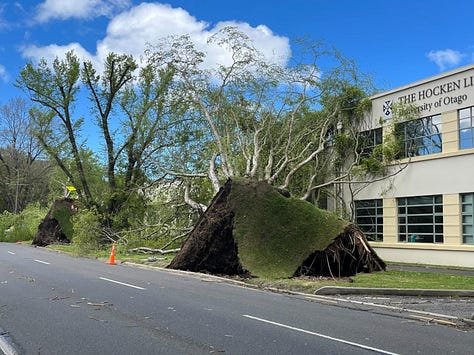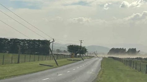 Yesterday was a NorWester for the books. Winds reached 144 mph on the top of Pudding Hill in Marlborough and 75 mph in many major cities. Rivers overflowed their banks, flights were grounded, roads flooded, trees toppled, roofs went sailing, power poles broke, trucks overturned… those living on the West Coast literally have no road access to the rest of the South Island.