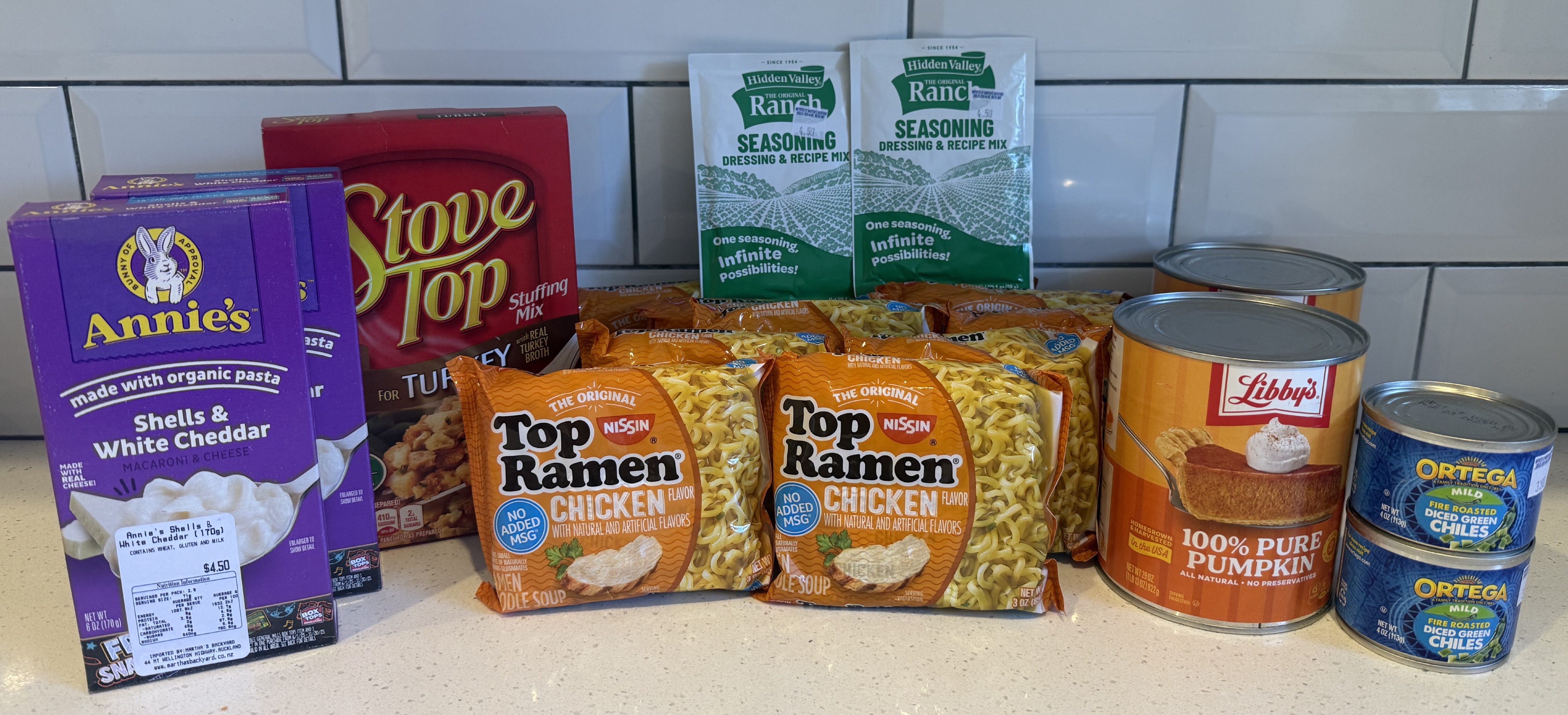 There is neither canned nor fresh pumpkin in Timaru (because it’s asparagus season, not gourd.) Luckily we had heard about Martha's Backyard, an online store that sources American foodstuffs for New Zealand residents. They required a $50 order to ship, though, so after selecting 2 cans of Libby’s, we threw in some flavors of home: Top Ramen, Annie’s Mac & Cheese, Stove Top, Ranch dressing mix…