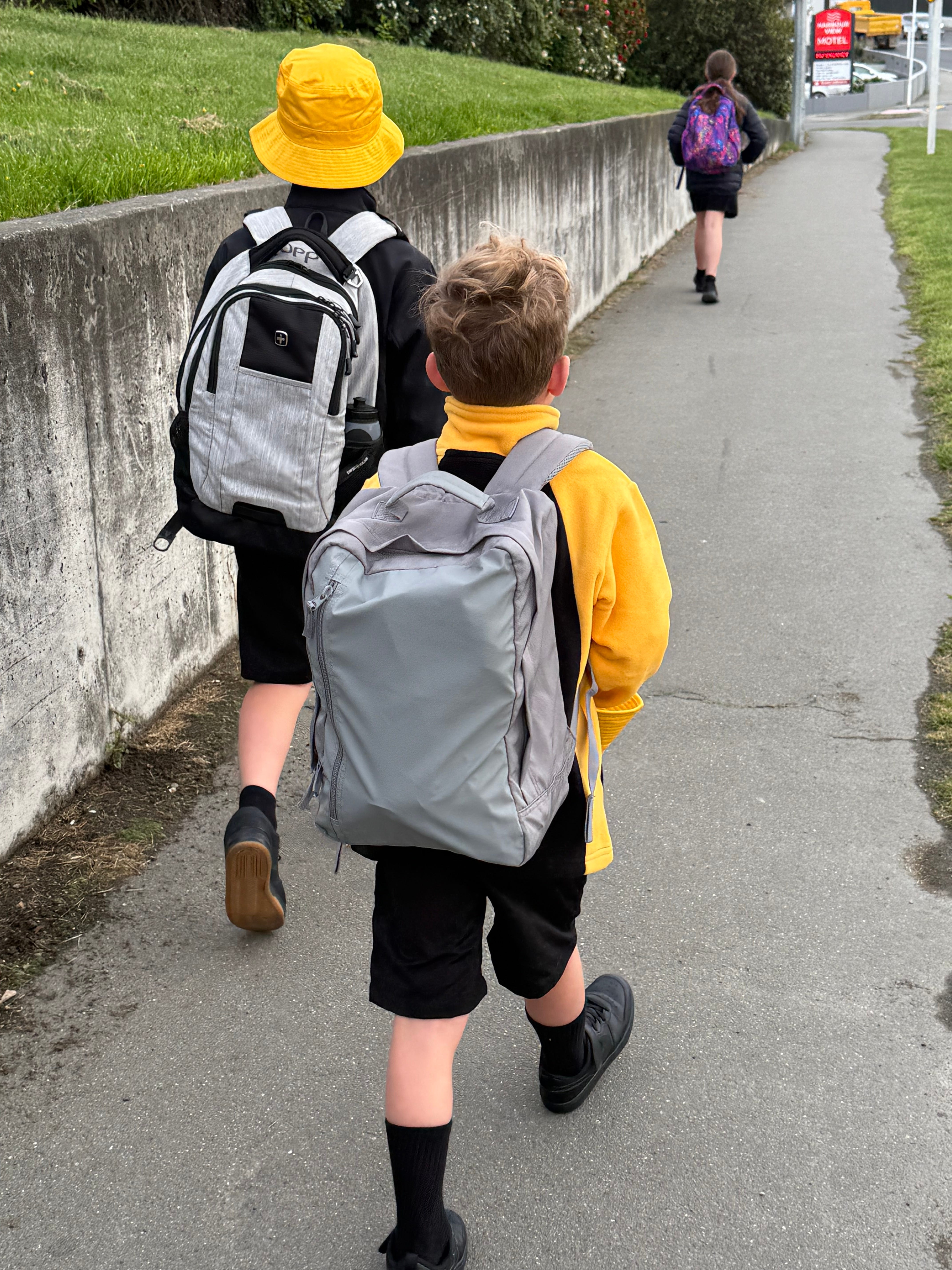 Started school! We met the principal on a Monday, bought school uniforms that same day, did a 90 minute practice run on a Tuesday, and attended three full days for the rest of the week. There was a welcoming ceremony for all 5 new students (this is the beginning of quarter 4 of the school year) and new school board members during which the students sang the school song (in Maori). The boys join a “walking school bus” each morning with 3 other students, one other dad and two dogs. There are two 30 minute recesses in a 6 hour day, which both boys (especially Little Brother) enjoy immensely. Lunch and snack are eaten in the classrooms (there is no cafeteria), and we haven’t seen any homework yet.