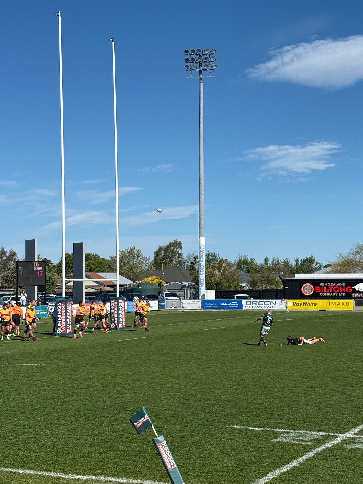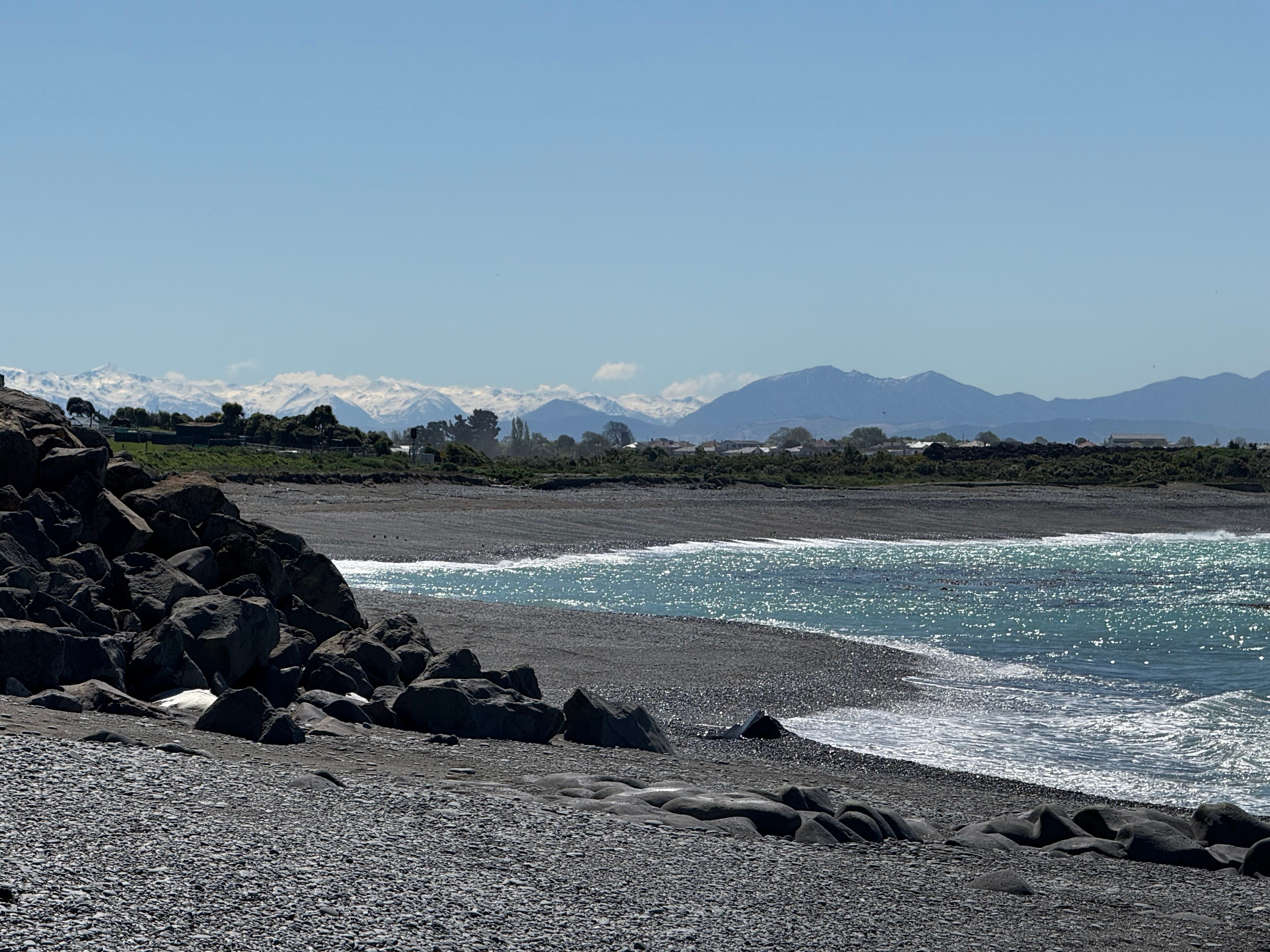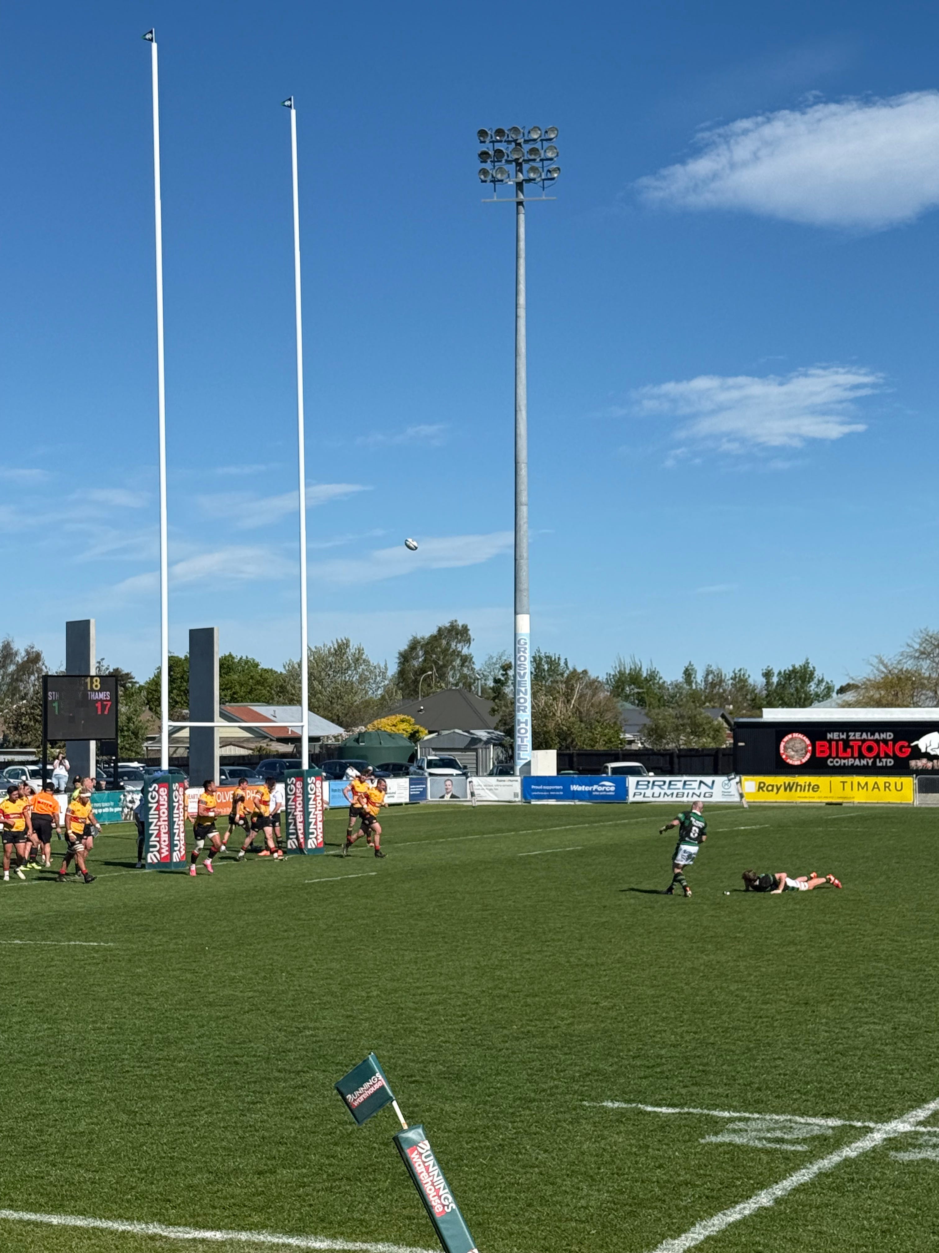 Recreated: We spent a few hours last weekend at a nearby aquatic center where the boys enjoyed a hydroslide, 3 meter “Bombing Tower” and a lazy river. We visited the playground and skate park several times, which has an aviary as well. Yesterday we finally touched the ocean and attended our first rugby match: South Canterbury vs. Thames Valley. Unfortunately, the home team lost the semi-finals match :-(